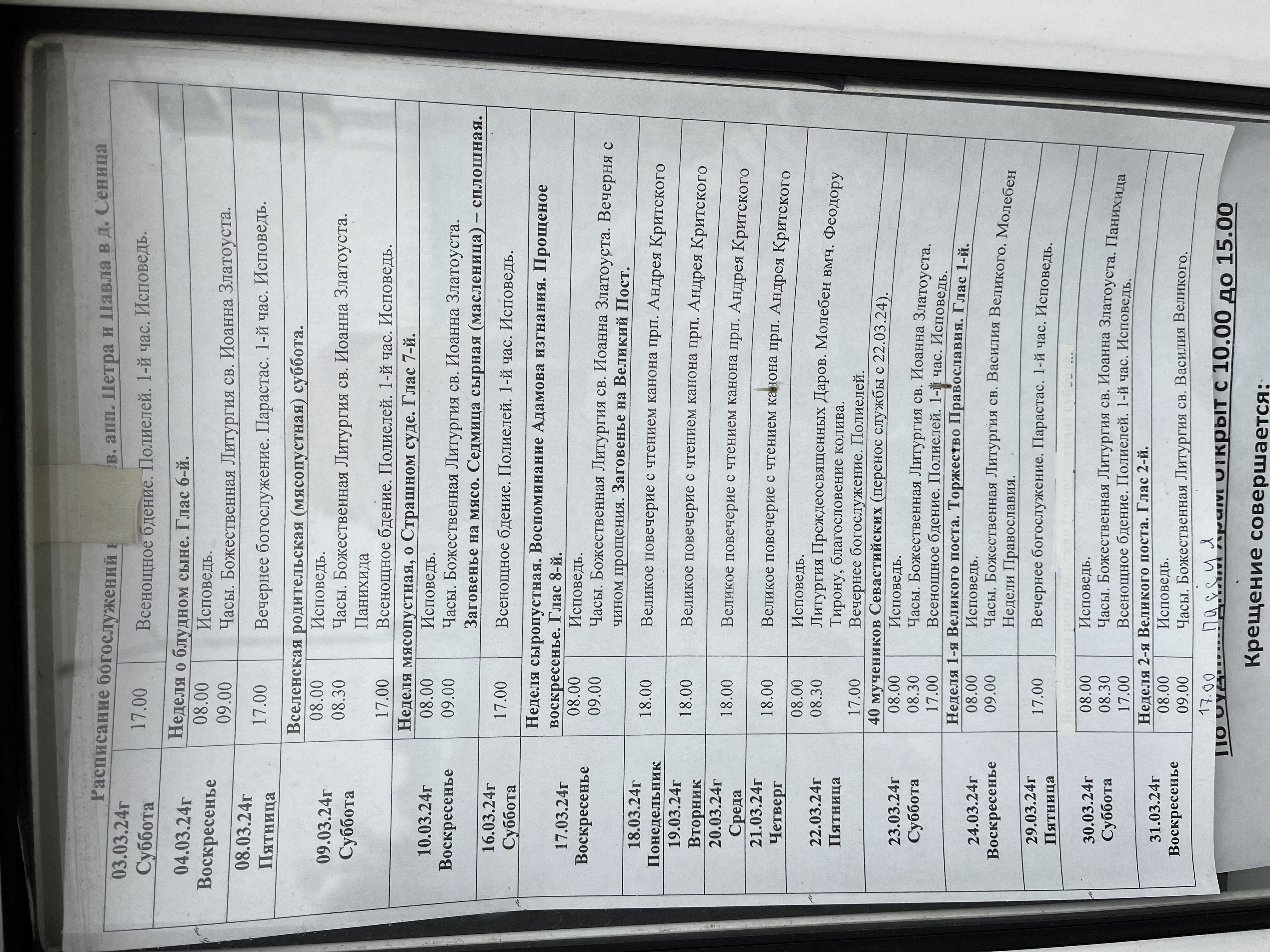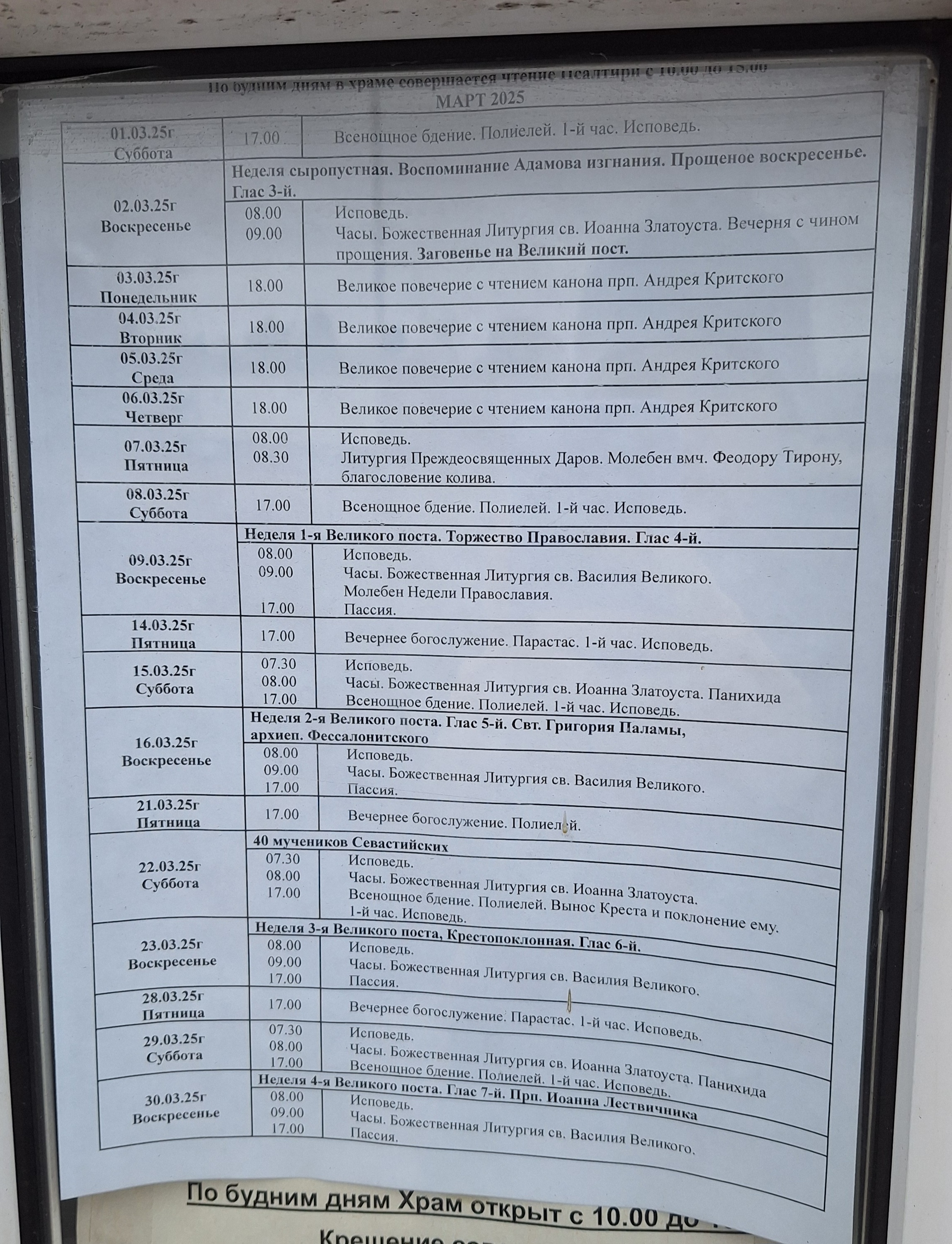 По будним дням в храме совершается чтение Псалтири с 10.00 до 15.00